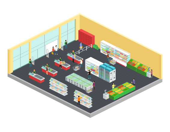 Flore plans are designed with the intention of guiding customers through the store in easy manner . The arrangement of Racks can vary based on the size of the store & overall layout of super market